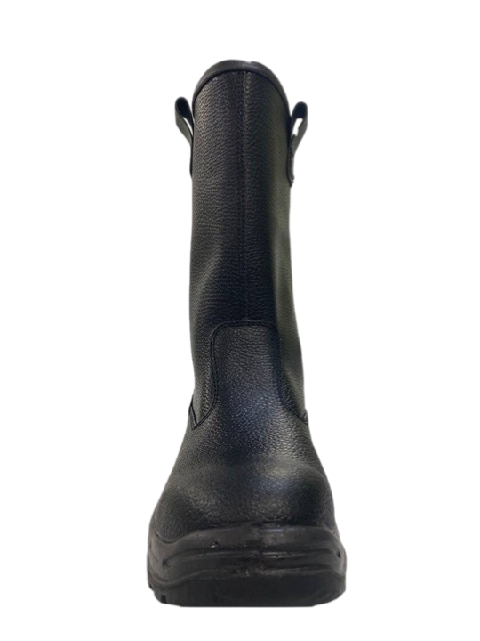 Сапоги сварщика — это специальная рабочая обувь из термостойкой кожи, обеспечивает защиту от нефти, нефтепродуктов, механических воздействий, растворов кислот концентрации до 20%, кратковременного (60 сек.) контакта с поверхностями, нагретыми до температуры 300°С, от искр, брызг расплавленного металла, окалины, от скольжения по зажиренным, мокрым и обледенелым поверхностям, от общих производственных загрязнений. Они имеют укрепленный металлический подносок (200 Дж) для защиты от ударов и проколов, термостойкую двухслойную подошву (ПУ/нитрил) с МБС, КЩС свойствами. Голенище сапог с петлями (проушинами) предотвращает попадание внутрь обуви окалины и брызг расплавленного металла.Верх: натуральная кожа (юфть) (толщина 2,0-2,2 мм).