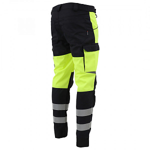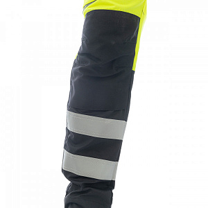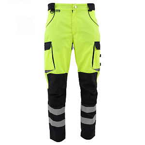 Сигнальные брюки BRODEKS KS309, желтый/черный - практичные рабочие брюки 2 класса видимости. За счёт флуоресцентного жёлтого цвета и широких светоотражающих лент отлично подходят для работы в тёмных помещениях и на объектах, где важна заметность.