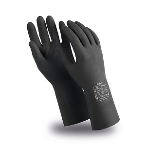 Перчатки КЩС-1 (CG-942), латекс, 0.50 мм, 300 мм, без подкладки, цвет черный